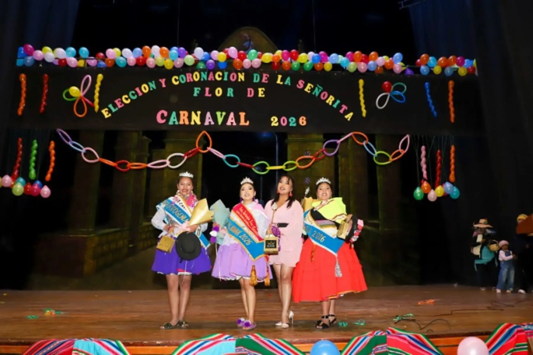 En el contexto del Carnaval Puneño 2026, el Teatro Municipal de Puno fue escenario de la Elección y Coronación de la Señorita Flor de Carnaval 2026, un evento que reunió a 18 jóvenes representantes de las tradicionales Tarkadas, Pinquilladas y Chacalladas.