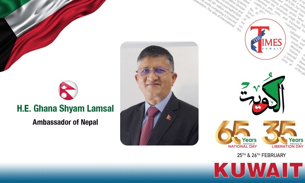 On behalf of the Government and people of Nepal, I have the great pleasure to extend our heartiest congratulations and warm greetings to the Government and the friendly people of the State of Kuwait on the auspicious occasion of the 65th National Day and the 35th Liberation Day of the State of Kuwait. The longstanding … The post Nepal Congratulates Kuwait on National and Liberation Days appeared first on Times Kuwait .
