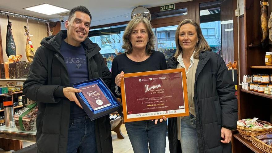 La vicepresidenta segunda de la Diputación, Luisa Sánchez, entregó al establecimiento Ibéricos A Veiga el diploma y la placa que lo acreditan como ganador del premio «Ilumina o Teu Escaparate», en el que participan los comercios de la Asociación Vigo Centro. La representante provincial reconoció el «valor diferencial» que aporta a la ciudad el comercio local a la hora de dinamizar los barrios o por su atención a la clientela.