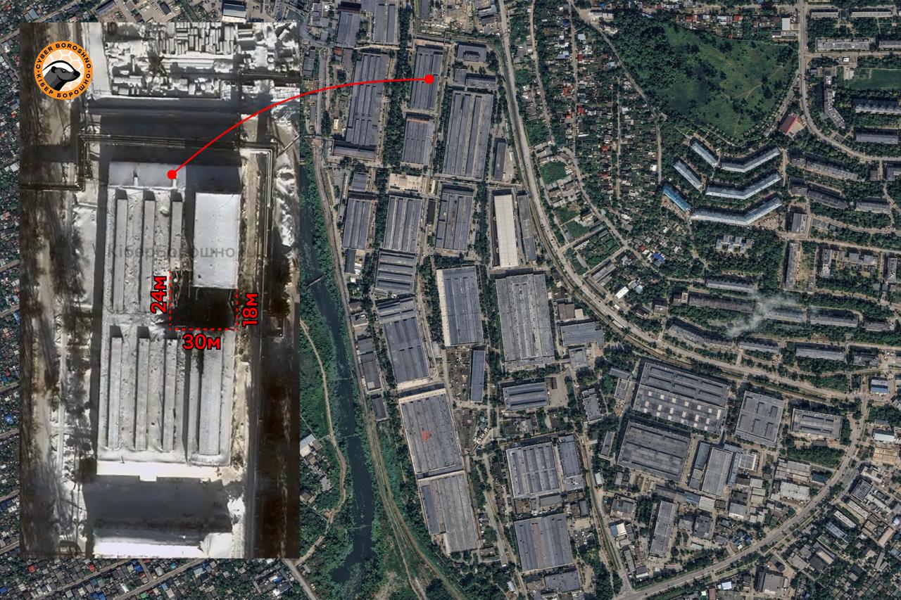 "В результаті ураження Воткінського заводу ракетами FP-5 "Фламінго" у покрівлі даху одного з цехів зафіксовано пролом орієнтовними розмірами 30 × 24 м. Висота пошкодження нерівномірна: близько 24 м з одного боку та 18 м з іншого. Характер руйнувань і конфігурація обвалу свідчать, що епіцентр...