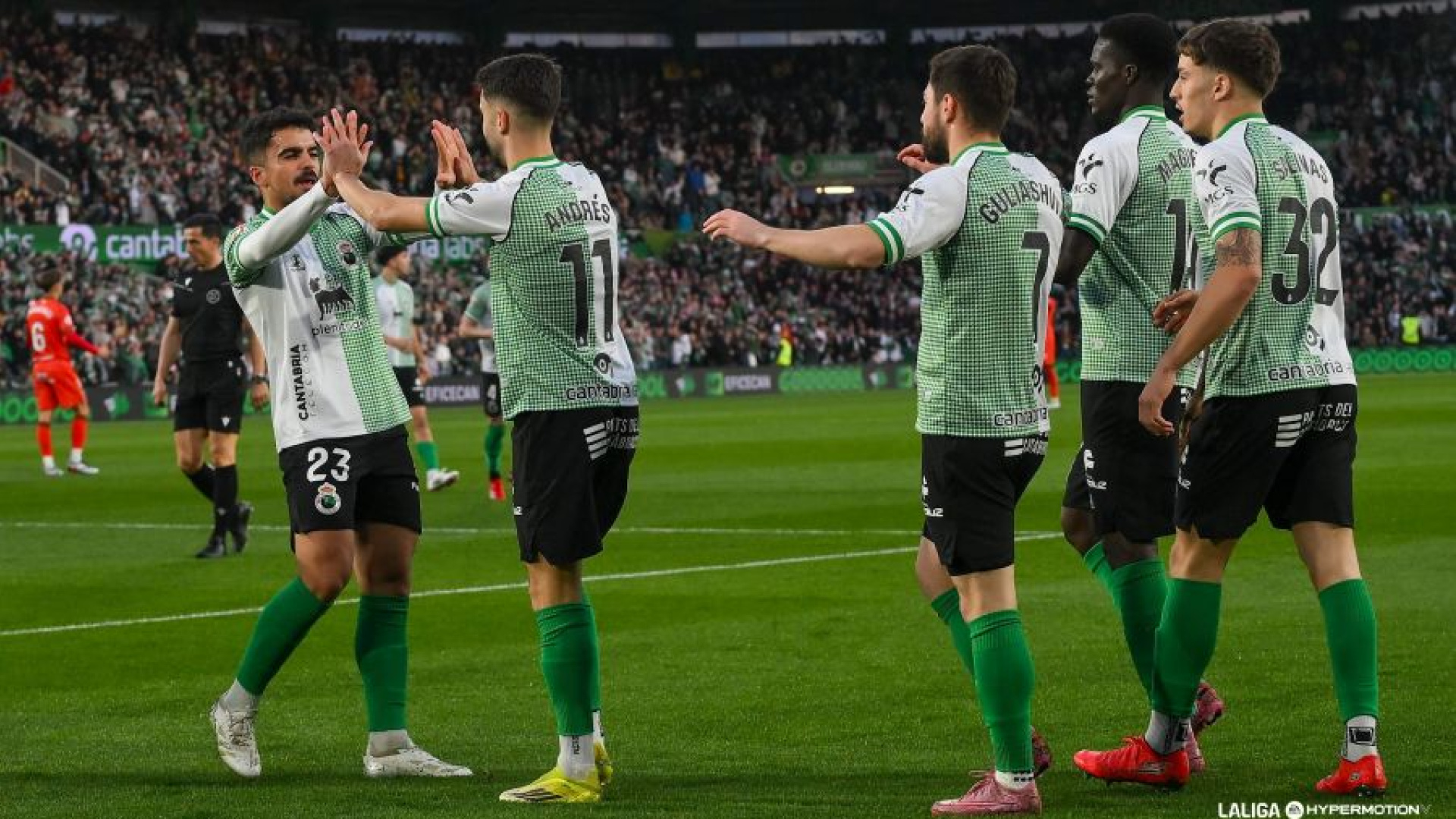 El partido comenzó con un Racing muy presionante en campo rival y un Burgos que tenía claro que debía de esperar cerca de su portería para tratar de salir a la contra con velocidad. Así, en los primeros minutos el equipo local tuvo sus primeros acercamientos a la portería de Cantero y, muy rápido, en el minuto 7, Andrés Martín, tras una buena jugada colectiva, ponía el primer y único tanto de la tarde en El Sardinero. Tras el tanto verdiblanco, el partido bajó pulsaciones fruto, en gran medida, a que el equipo de José Alberto López dejó de buscar la portería rival con tanto ahínco, mientras trataba de realizar posesiones largas que le hicieran encontrar huecos entre la poblada defensa del Burgos. A partir del ecuador de la primera mitad, el elenco castellano creció en el partido y empezó a instalarse en campo verdiblanco, aunque, eso sí, sin tener oportunidades claras de poder empatar. Poco más ocurrió durante los primeros cuarenta y cinco minutos, en los que el Racing tuvo más control de balón y las ocasiones, aunque las sensaciones eran que el Burgos iba a más de cara a la segunda parte. En la reanudación fue el equipo de Luis Miguel Ramis quien pareció haber entrado mejor al encuentro y en una buena transición, en la que Salinas no despejó bien, David González estuvo a punto de sorprender a Jokin Ezkieta tras un disparo desde fuera del área, aunque su disparo salió cerca del poste derecho. El Burgos, en el minuto 53, tuvo una ocasión muy clara para hacer el 1-1, y es que tras un córner a favor del Racing, Peio Canales perdió la pelota siendo el último futbolista y Córdoba se quedó solo ante Ezkieta, al cual regateó y al intentar servirle el pase de la muerte a Sergio González el defensa uruguayo Facu González apareció providencial para evitar el empate. Las ocasiones dieron vida a un Burgos que se veía superior sobre el terreno de juego, algo que no gustó nada a José Alberto, el cual rápidamente agitó el árbol e introdujo un doble cambio en búsqueda de volver a coger el timón del partido. Las sustituciones surtieron efecto en el conjunto local y, de nuevo, el equipo local volvió a coger la posesión del balón, intentando jugadas largas pero sin mucha incidencia en el área de Cantero. El Racing supo jugar los últimos minutos del partido sin conceder ocasiones claras al Burgos, sabiendo que no se le podían escapar los tres puntos y, por ende, la recuperación del liderato en la previa de su 113 aniversario. Racing: Ezkieta; Mantilla, Manu Hernando, Facu González, Salinas; Andrés Martín (Mario García, min. 90), Damián (Sergio Martínez, min. 71), Maguette (Íñigo Sainz-Maza, min. 56), Peio Canales, Íñigo Vicente (Suleiman, min. 56); y Guliashvili (Sangalli, min. 71). Burgos: Cantero; Lizancos, Sergio González, Grego Sierra, Florian Miguel; David González (Mario González min. 83), Morante (Galdames min. 83), Atienza, Íñigo Córdoba (Fermín, min . 74); Curro (Mollejo, min. 74) y Mateo Mejía (Appin, min. 61). Gol: 1-0, Andrés Martín, min. 7. Árbitro: Saúl Ais (comité valenciano). Amonestó con tarjeta amarilla a Facu González (min. 45+1), Andrés Martín (min. 46) y Suleiman (min. 60) del Real Racing Club, y a los visitantes Grego Sierra (min. 27) y Florian Miguel (min. 84). Incidencias: Partido correspondiente a la vigésimo séptima jornada de LaLiga Hypermotion disputado en los Campos de Sport de El Sardinero ante 22.234 espectadores. Antes de comenzar el encuentro se guardó un minuto de silencio en memoria de Nando Yosu, quien fuera jugador, entrenador y secretario técnico del Real Racing Club con motivo del décimo aniversario de su fallecimiento.