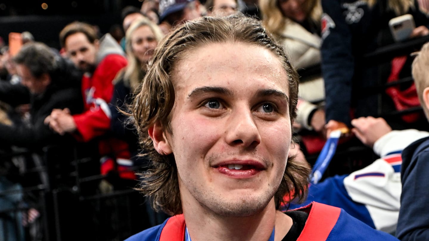 USA men's hockey star Jack Hughes (who is rumored to be dating Tate McRae) was thinking of someone else after winning an Olympic gold medal.
