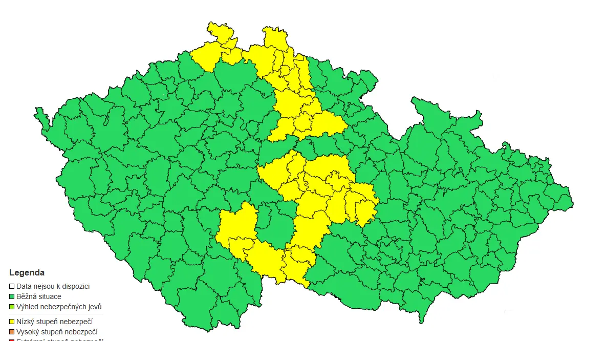 Hladiny řek stoupají, Mandava na povodňovém stupni. Meteorologové rozšířili výstrahu