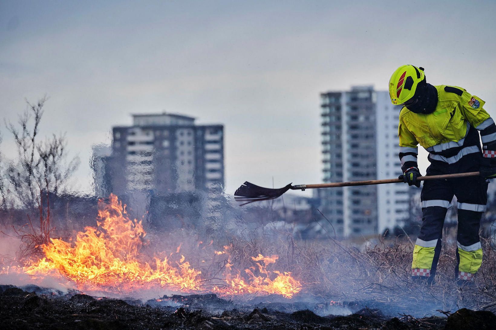Myndir sem teknar voru í Kórahverfi í Kópavogi suður í átt að Guðmundarlundi sýna hvernig eldurinn breiddist út til vesturs á hæðinni fyrir ofan Vatnsendahlíð til klukkan að verða fimm síðdegis.
