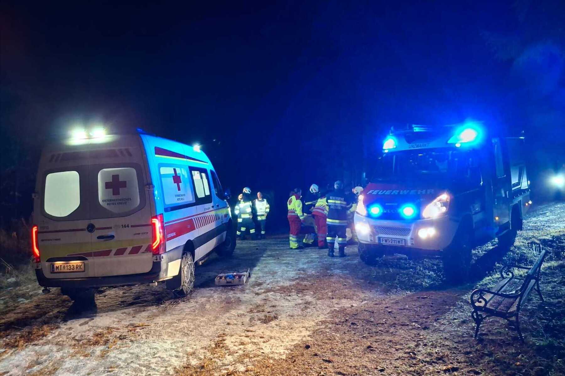 56-Jähriger aus Unzmarkt-Frauenburg wurde bei Waldarbeiten von Baumstamm getroffen. Helfer fuhren kilometerweit über Forststraße zur Unfallstelle.