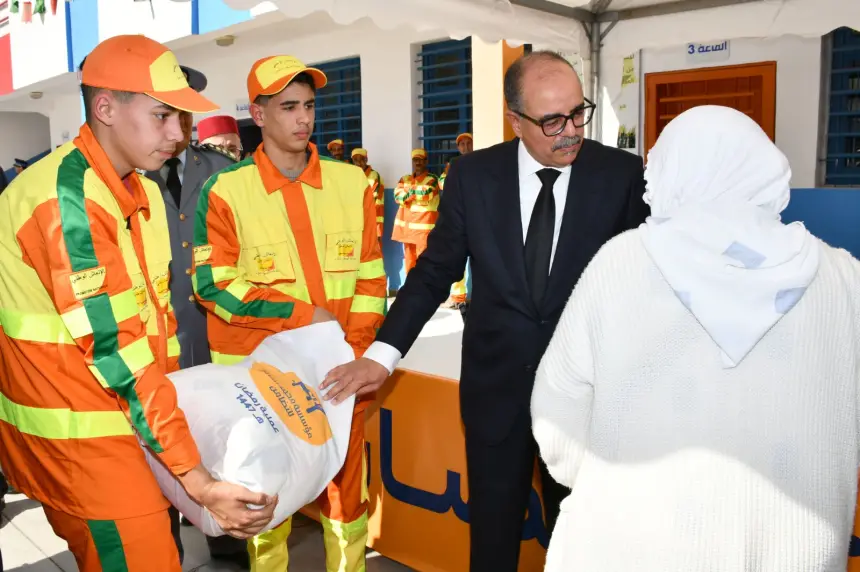 أشرف عامل عمالة الصخيرات تمارة، السيد المصطفى النوحي، صباح اليوم الأحد 22 فبراير 2026، بمدرسة الموحدين بمدينة تمارة، على إعطاء انطلاقة عملية توزيع “قفة رمضان”
