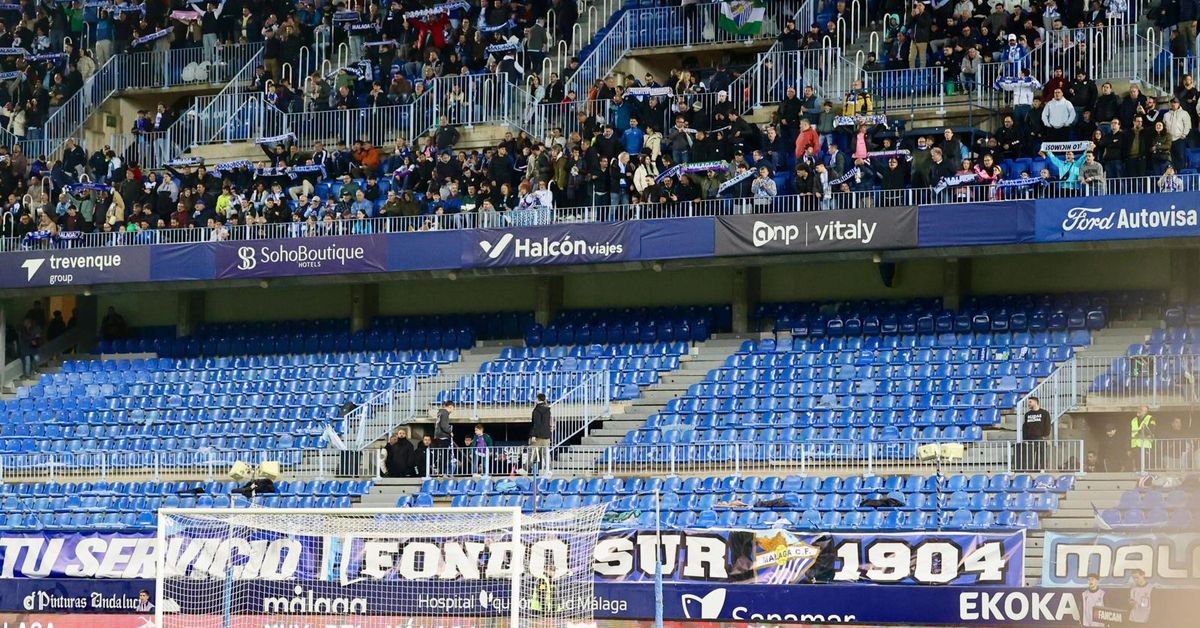 Quejas por los arbitrajes y homenaje del equipo al director de comunicación, Vïctor Berbell, que se marcha del club Búscate en las gradas de La Rosaleda