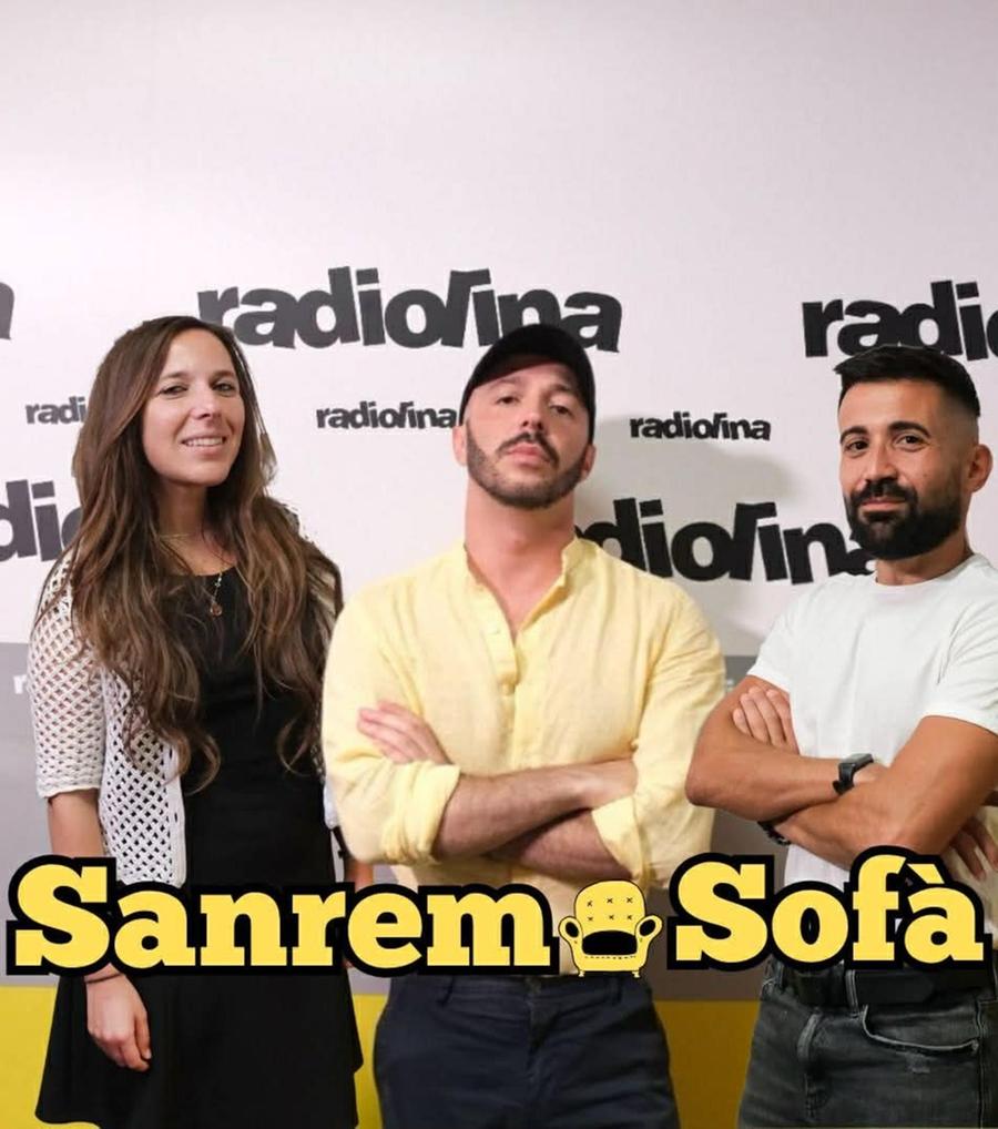 Con Enzo Asuni e Giuseppe Valdes accomodati sul “Sofà” di Radiolina Inviata in Riviera Angelica D’Errico