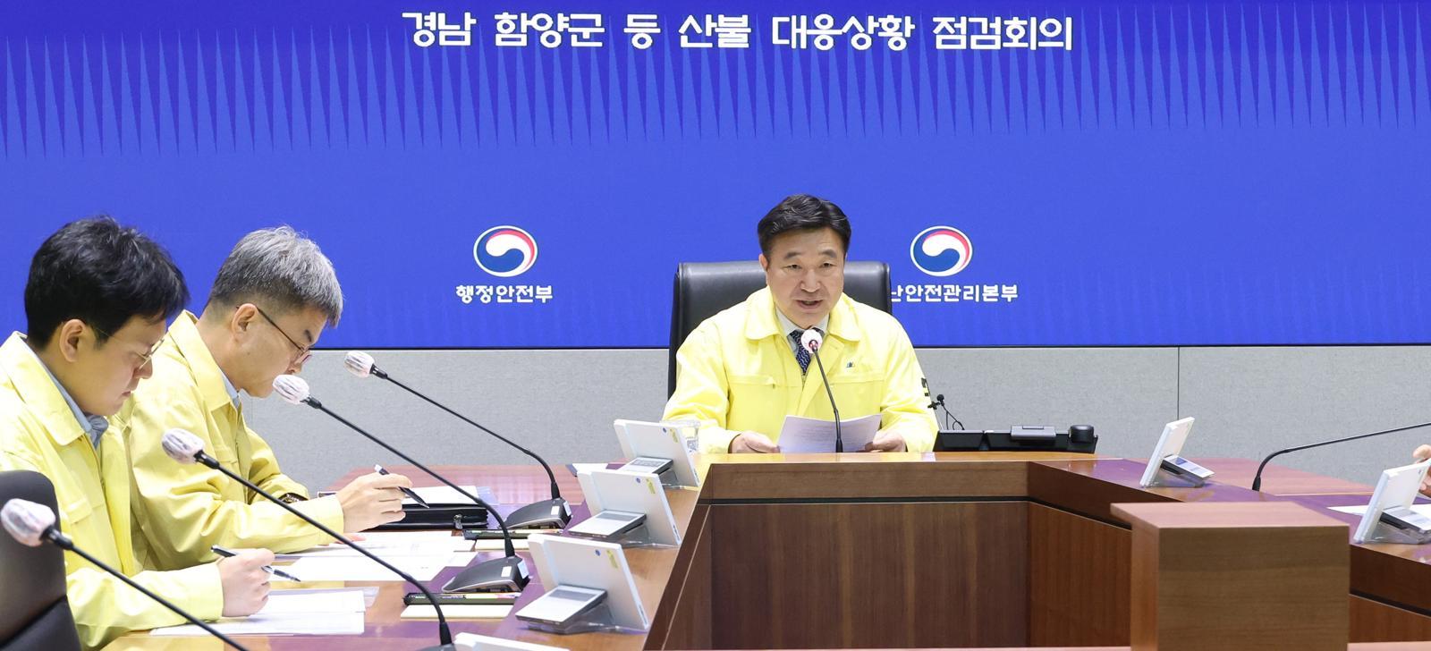 전국에서 산불이 잇따라 발생하고 있는 가운데 윤호중 행정안전부 장관이 23일 산불 방지에 동참해달라고 당부했다.윤 장관은 이날 주말 동안 발생한 산불과 관련해 산림청, 소방청, 경찰청, 국방부, 복지부, 경상남도, 함양군, 기상청 등 관계기관과 긴급 점검회의를 열었다.회의에서는 주말 사이 발생한 산불 현황 및 현재 진행 중인 경남 함양군 산불과 관련한 기관별 대응 상황 등을 점검했다.윤 장관은 경남 함양군 산불 관련해 가용한 모든 장비와 인력을 투입해 진화에 총력을 기울이라고 지시했다. 주민 대피를 신속하게 실시하는 등 인명 피해가 발생하지 않도록 최우선으로 조치하고, 산불 진화대원 등 현장 인력에 대한 안전 관리도 각별히 유의해달라고 강조했다. 또 예년에 비해 건조한 날씨가 계속되고, 강풍까지 겹치며 작은 불씨 하나가 대형 산불로 이어질 수 있는 상황을 감안해 한층 강화된 산불 방지 방안을 각 기관에 요청했다. 우선 산불의 주요 원인이 개인 부주의라는 점을 고려해 담배꽁초