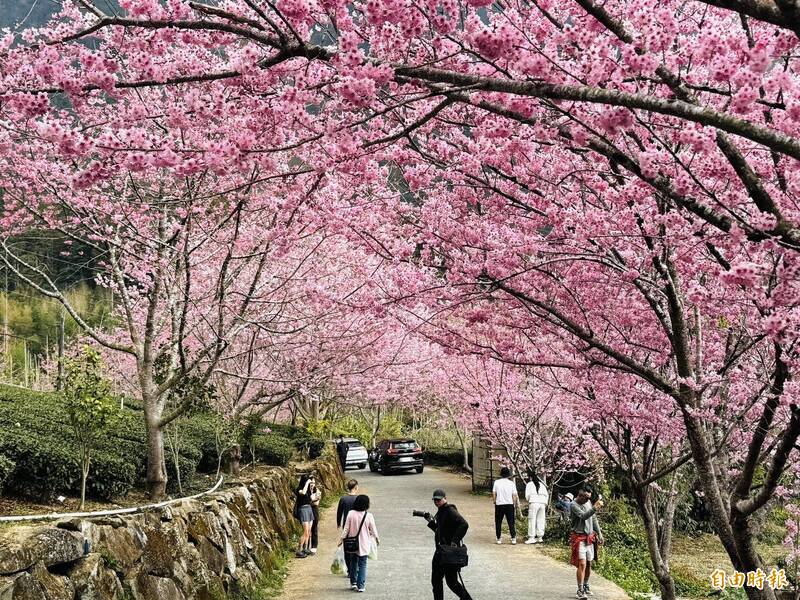 嘉義櫻花季進入第三波,由粉紅色系的椿寒櫻(又稱香水櫻)與昭和櫻接棒,賞櫻熱區的阿里山鄉樂野村中興製茶所,粉紅櫻花與青翠茶園相映成趣,相當浪漫。達人稱今年椿寒櫻昭和櫻花況都很好,...…