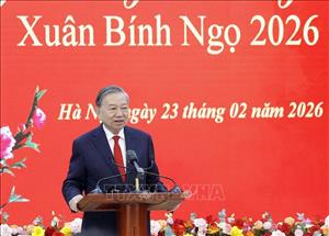 Nhân dịp đầu Xuân năm mới Bính Ngọ 2026, sáng 23/2/2026, Tổng Bí thư Tô Lâm chúc Tết cán bộ, công chức, viên chức, người lao động Văn phòng Trung ương Đảng.