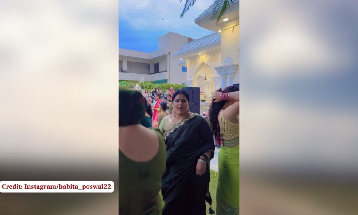 सोशल मीडिया पर बबिता तंवर पोसवाल (Babita Tanwer Poswal) के डांस का एक वीडियो तेजी से वायरल हो रहा है. इस वीडियो में बबिता जी ने काली साड़ी में 'हीरो होंडा' गाने पर जमकर डांस किया. इतना ही नहीं, उनके डांस में उनकी सहेलियों ने भी भरपूर साथ दिया. इस दौरान हरी साड़ी वाली उनकी एक सहेली ने भी जमकर इस गाने पर डांस किया और महफिल लूट ली. सोशल मीडिया पर यह वीडियो तेजी से वायरल हो रहा है, इसलिए इसे हम आपको दिखा रहे हैं. हालांकि, अगर बबिता जी की तरफ से कोई आपत्ति आती है, तो न्यूज 18 हिंदी इस वीडियो को तुरंत हटा देगा.