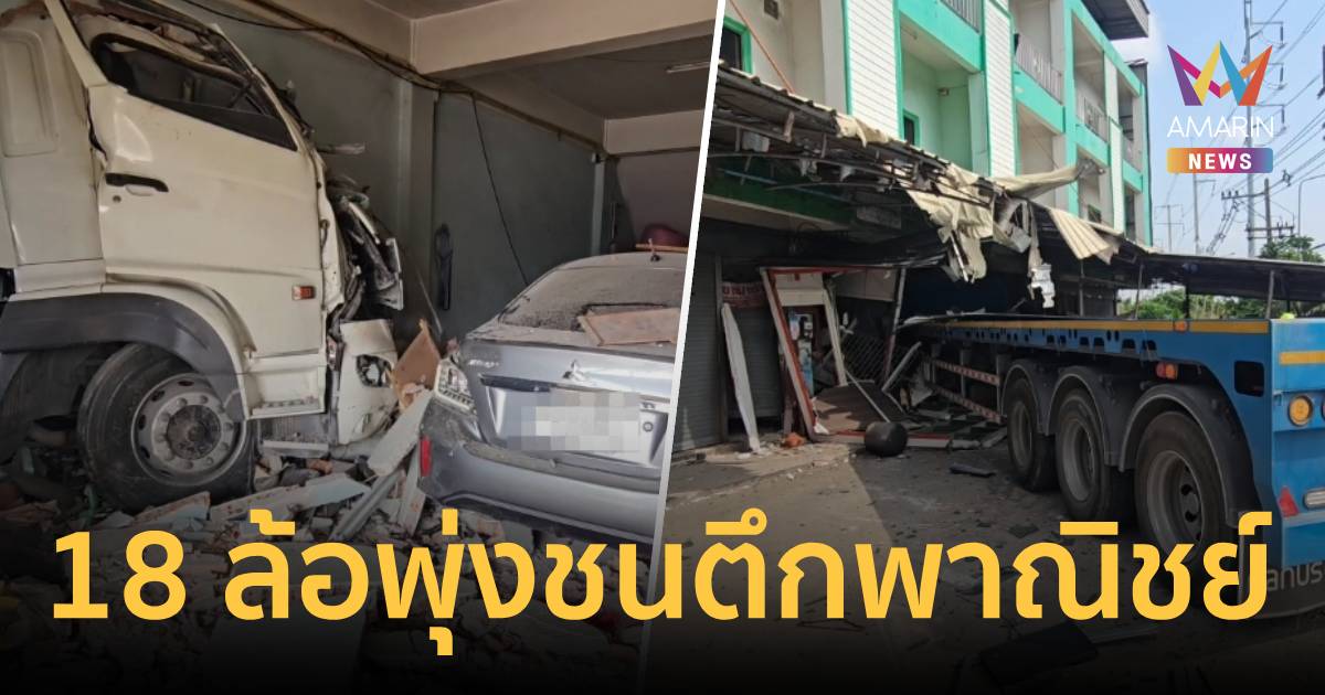 ชนวินาศ! รถพ่วง 18 ล้อ พุ่งชนตึกพาณิชย์สูง 4 ชั้น หวิดถล่มทั้งตึก คนขับ-แม่ค้าส้มตำ เจ็บ