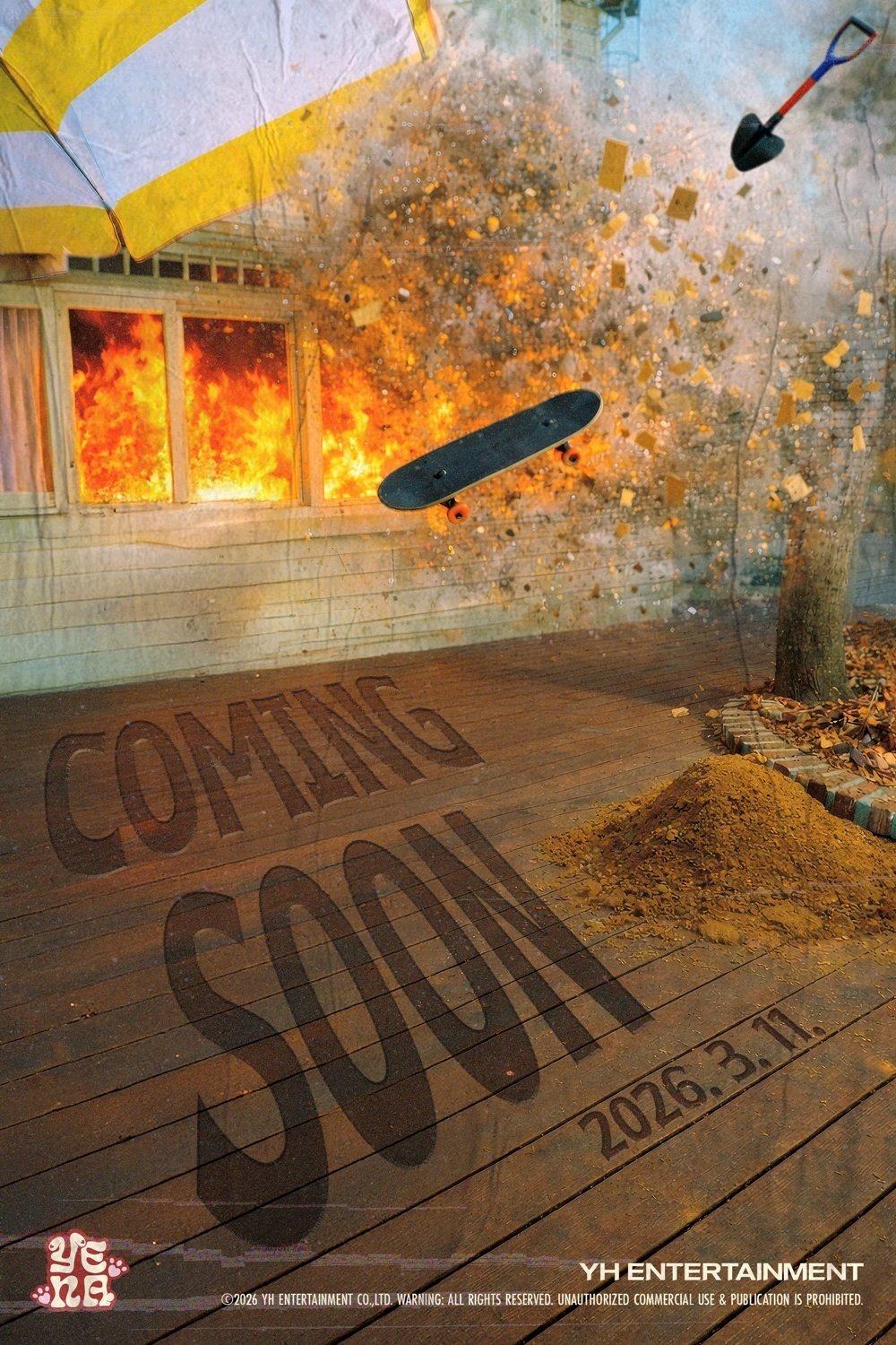 가수 최예나(YENA)가 8개월 만에 컴백한다.최예나는 23일 공식 사회관계망서비스(SNS)를 통해 커밍순 이미지를 공개하며 오는 3월 11일 컴백을 공식화했다. 이미지에는 화염에 휩싸인 건물과 재로 사라져 가는 나무가 등장해 강렬한 분위기를 자아냈다. 그 위로 스케이트보드와 삽 등이 공중에 날아가는 듯한 요소가 더해져 폭발적인 긴장감과 극적인 장면을 완성했다.이어 같은 날 낮 12시에는 새 앨범명 ‘러브 캐처’(LOVE CATCHER)와 함께 프로모션 스케줄러를 공개하며 본격적인 컴백 카운트다운에 돌입했다. 폭탄 타이머와 말풍선 그래픽을 활용해 프로모션 일정을 공개한 최예나는 24일 콘셉트 포토 공개를 시작으로 트랙리스트, 하이라이트 메들리, 뮤직비디오 티저 등을 순차적으로 선보일 예정이다.최예나는 그동안 ‘스마일리’(SMILEY) (Feat. BIBI)‘, ’스마트폰‘(SMARTPHONE), ’네모네모‘ 등 자신만의 유니크한 색깔이 담긴 음악으로 솔로 아티스트로서 확고한 존