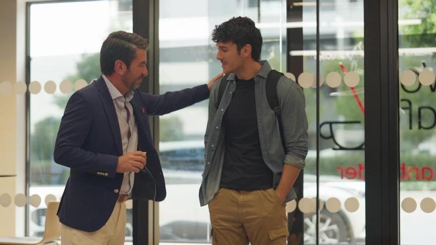 Rafa está buscando un sitio tranquilo y con buena conexión a internet para estudiar, y ha encontrado el lugar perfecto: Work Café Santander, un espacio multifuncional y versátil diseñado por Banco Santander para clientes y no clientes de la entidad -con conexión gratuita a internet de alta velocidad, salas de reuniones, cargadores para el móvil y un estupendo café de especialidad-.