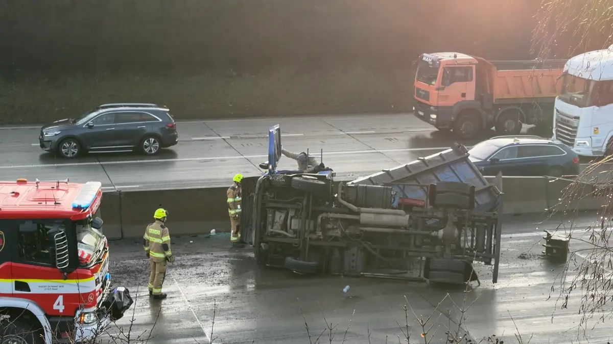 Dopravu na Pražském okruhu u Zličína zkomplikovala v pondělí ráno nehoda náklaďáku převážejícího bagr. Ve směru od D7 k dálnici D5 vznikla dlouhá kolona.