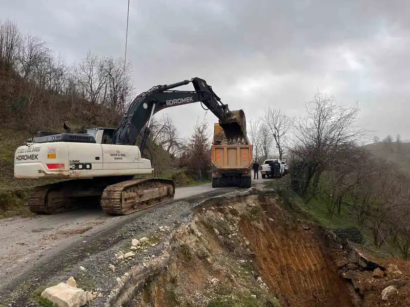 Düzce'de heyelan sonrası yol çalışması tamamlandı
