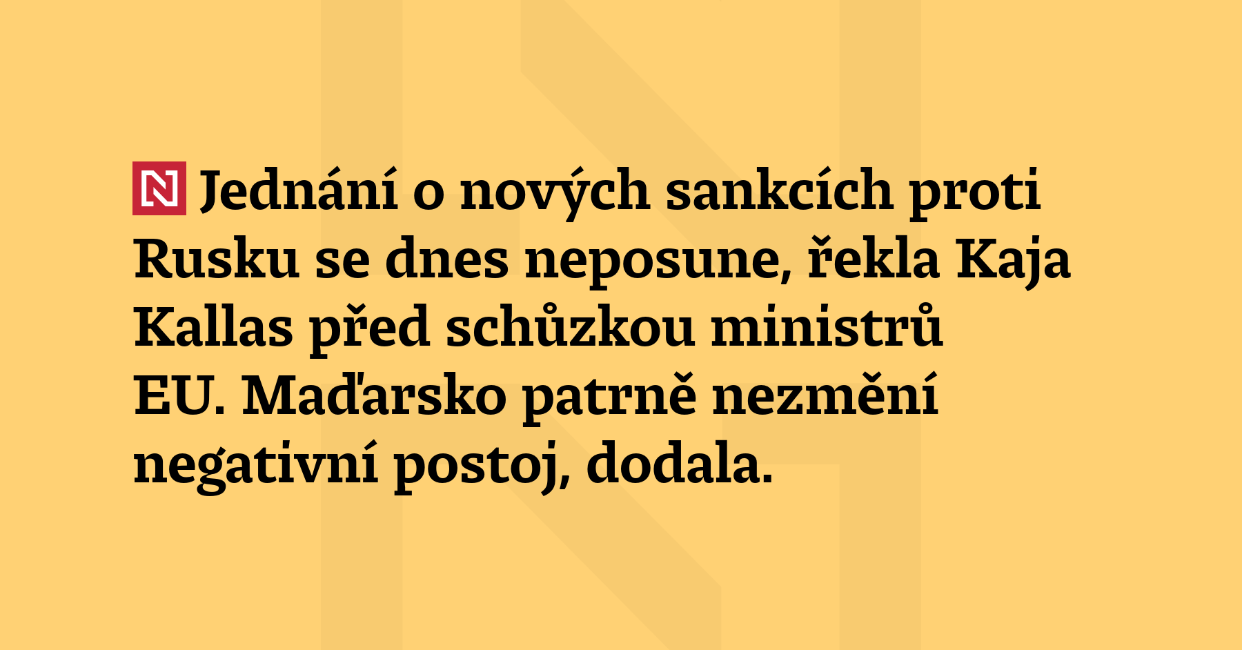 Jednání o nových sankcích proti Rusku se dnes neposune, řekla Kaja Kallas před schůzkou ministrů EU. Maďarsko patrně nezmění negativní postoj, dodala. (ČTK)