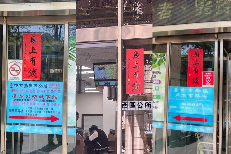 中市府公務機關門口貼「馬上有錢」 民進黨議員:不怪嗎