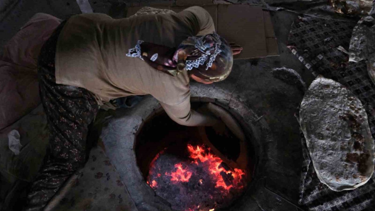 Doğu Anadolu'da Ramazan sofralarının vazgeçilmez yöresel lezzeti tandır ekmeği yakılan tandırlarda kadın ustalar tarafından pişiriliyor.