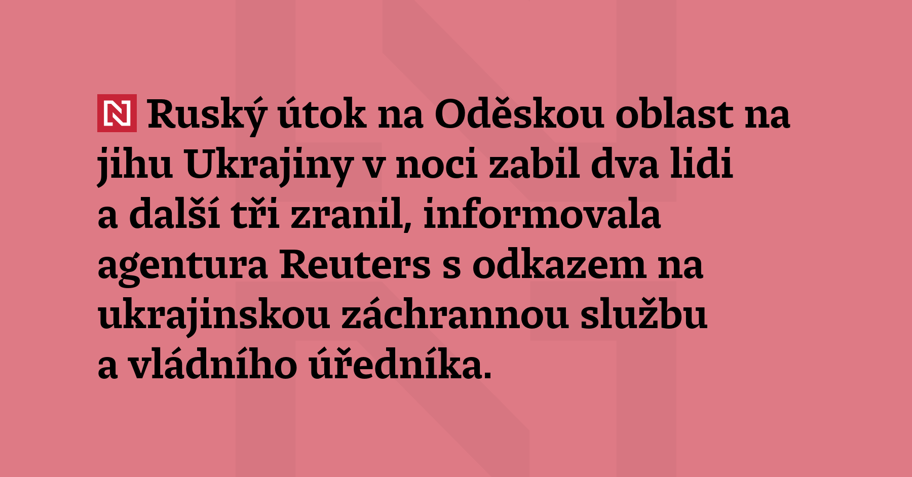Ruský útok na Oděskou oblast na jihu Ukrajiny v noci zabil dva lidi a další tři zranil, informovala agentura Reuters s odkazem na ukrajinskou záchrannou službu a vládního úředníka. Dva lidé zemřeli, když ruský dron dopadl na odpočívadlo pro nákladní automobily a způsobil požár, oznámila služba na Telegramu. Ministr infrastruktury Oleksij Kuleba na Telegramu sdělil, že Rusko zaútočilo na přístavní […]