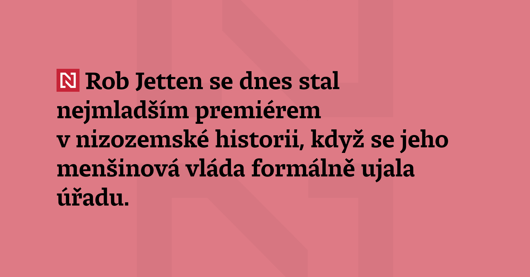 Rob Jetten se dnes stal nejmladším premiérem v nizozemské historii, když se jeho menšinová vláda formálně ujala úřadu. Osmatřicetiletý Jetten vede třístranickou vládu složenou z jeho centristické strany D66, středopravicových Křesťanských demokratů a středopravicové Lidové strany pro svobodu a demokracii. (AP, Reuters)