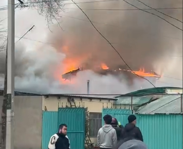 Пламя охватило здание на улице Фере в Бишкеке.