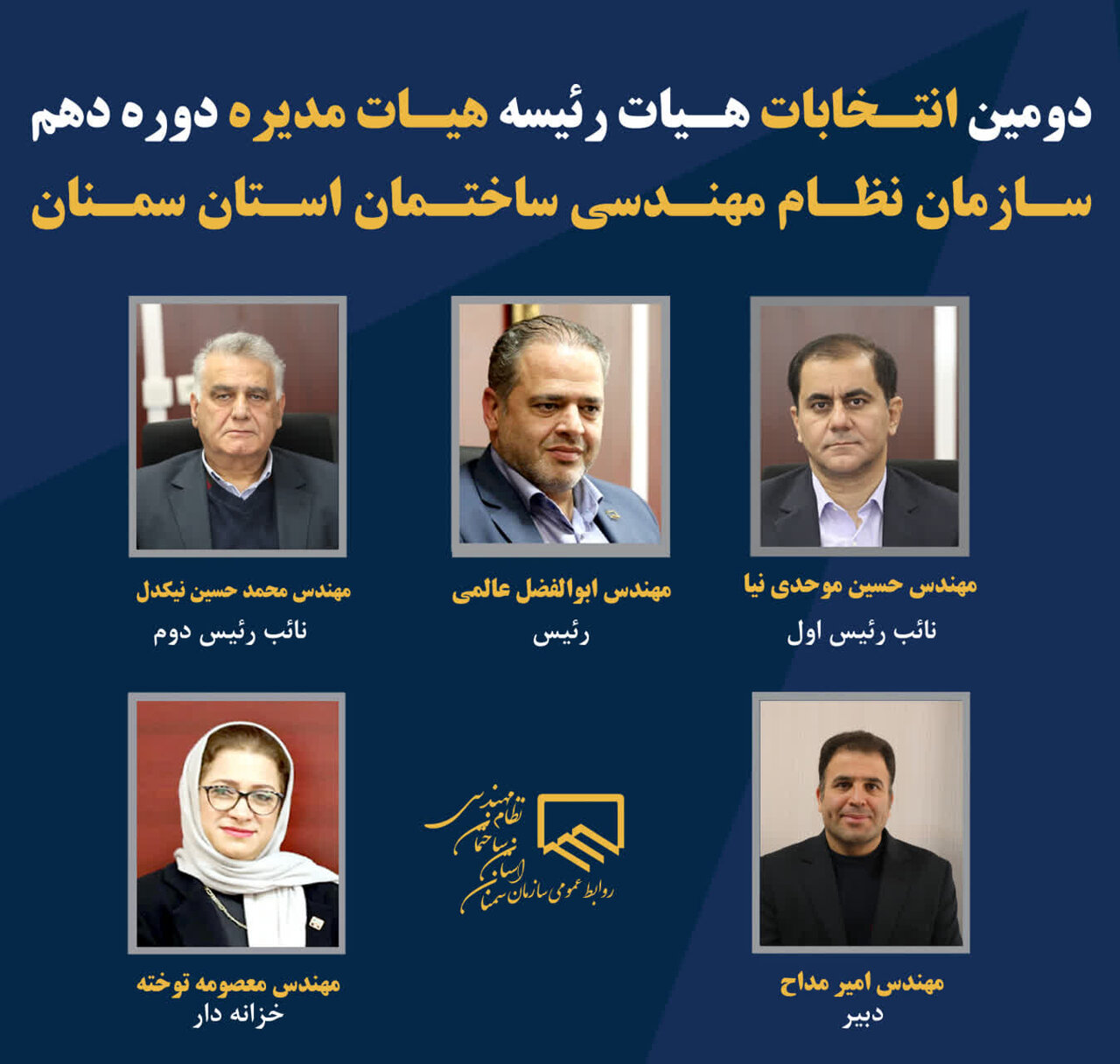 در دومین انتخابات هیأترئیسه هیأتمدیره دوره دهم سازمان نظام مهندسی ساختمان استان سمنان، اعضای جدید هیأترئیسه این سازمان معرفی