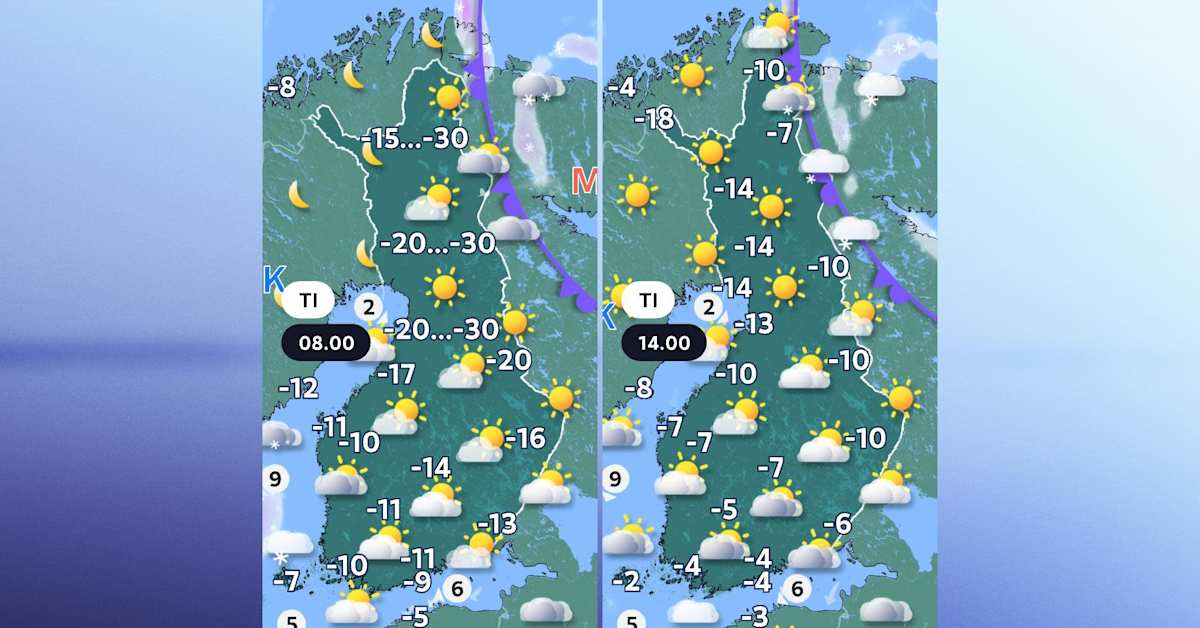 Säähän käänne: aurinkoinen pakkassää vaihtuu vesisateisiin