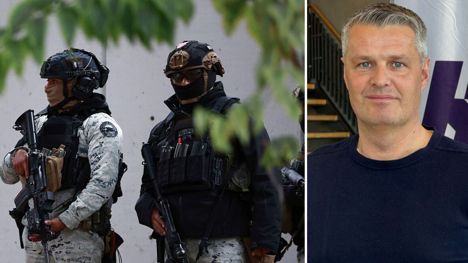 Mikil öryggisgæsla er í kringum íslenska karlalandsliðið í fótbolta sem statt er í Queretaro í Mexíkó og mætir heimamönnum í æfingaleik á miðvikudag. Fulltrúar KSÍ taka enga sénsa varðandi öryggi leikmanna og starfsfólks eftir ófremdarástand sem skapaðist í landinu í gær í kjölfar þess að mexíkóski herinn skaut einn helsta glæpaforingja landsins til bana.