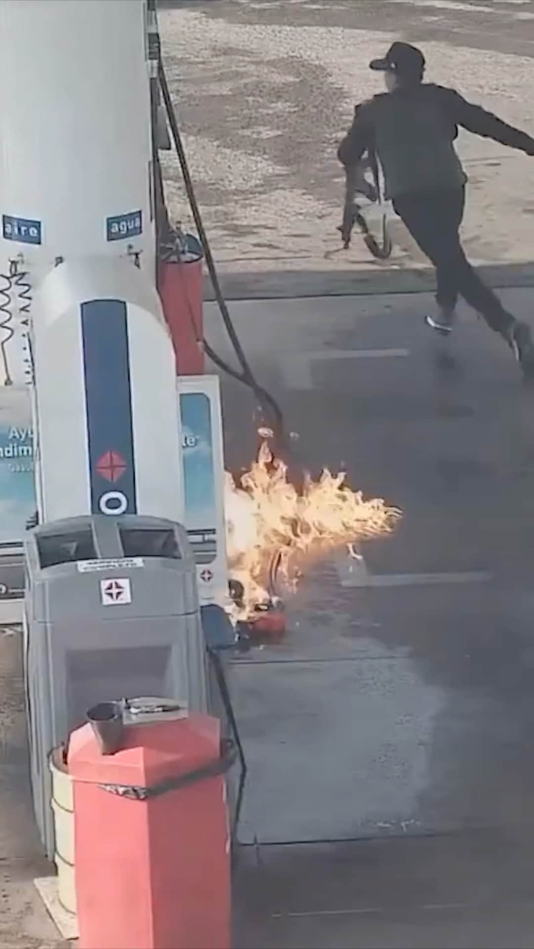 Setter fyr på bensinstasjonen