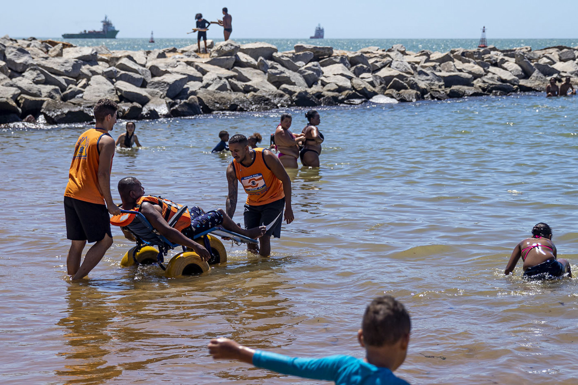 Praia acessível garantiu banho de mar a pessoas com mobilidade reduzida em Macaé