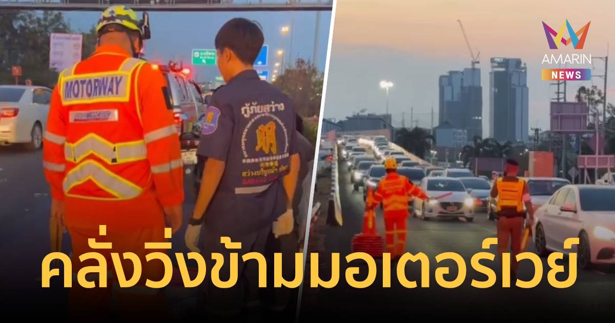 ชายคลุ้มคลั่งวิ่งข้ามมอเตอร์เวย์ กระบะเบรกไม่ทันพุ่งชนบาดเจ็บสาหัส ทำรถติดยาว