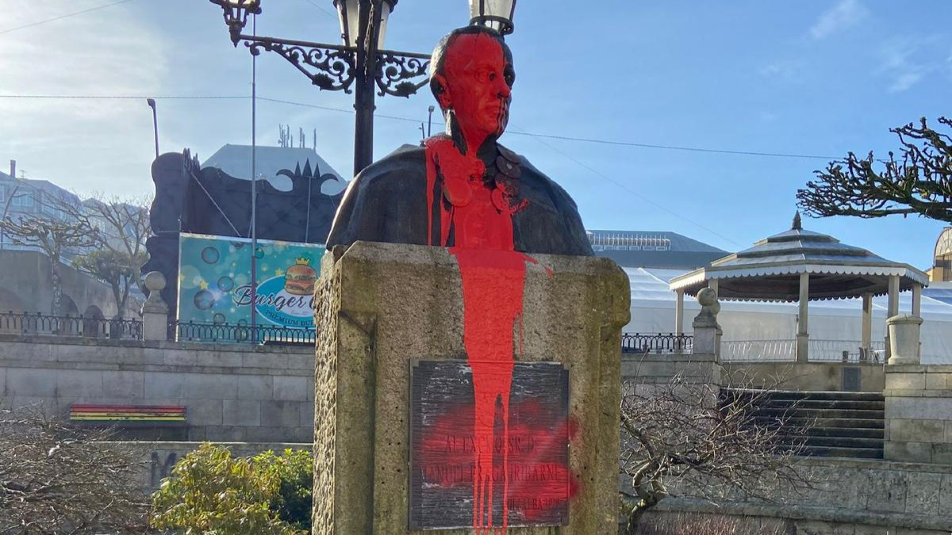 El Partido Popular de Vilalba (Lugo) ha anunciado que formalizará una denuncia ante la Guardia Civil por el acto vandálico ocurrido este fin de semana contra el busto dedicado a Manuel Fraga. El monumento, situado en la Praza da Constitución de la capital chairega, ha aparecido cubierto con pintura roja. El movimiento juvenil Gazte Koordinadora Sozialista (GKS) ha reivindicado la autoría del ataque. La organización considera a Fraga uno de los principales responsables de las cargas policiales del 3 de marzo de 1976 en Vitoria, que se saldaron con cinco muertos y más de cien heridos. El Partido Popular de Galicia ha censurado “firmemente el hecho de que un grupo radical independentista” presuma de este tipo de actos. En un comunicado, los populares han recordado que el político fue presidente de la Xunta durante más de 15 años y que "los ataques de encapuchados no son democracia" La formación ha insistido en que Galicia es una Comunidad “tranquila” y ha alertado de que estos actos vandálicos incitan al “enfrentamiento, la violencia y solo pretenden alterar el orden democrático”. La presidenta de la agrupación local del PP de Vilalba, Sandra Vázquez, ha confirmado que los agentes de la Guardia Civil ya han sido informados de lo sucedido y han realizado las diligencias oportunas. La denuncia será formalizada este lunes en el cuartel de la localidad lucense. Asimismo, Sandra Vázquez ha comunicado que el busto del expresidente de la Xunta y fundador del partido ya ha “sido limpiado”. De hecho, ha precisado que, "aunque quedaron algunos restos de pintura, está ya bastante limpio"
