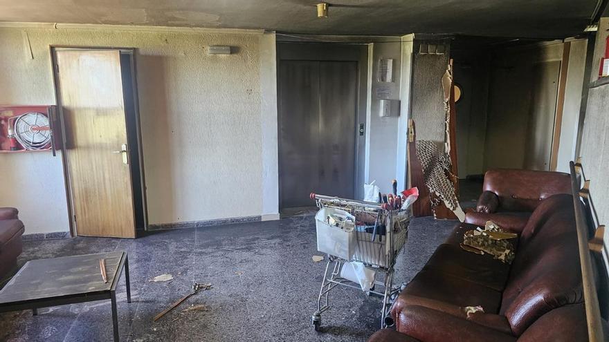Un varón permanece en la Unidad de Cuidados Intensivos (UCI) tras el incendio en la residencia La Granadilla de Badajoz originado en la tarde del domingo en una zona común en la quinta planta del centro.