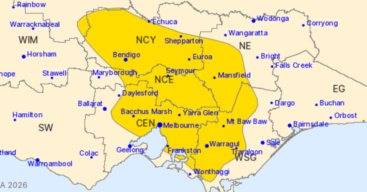 Communities across northern and central parts of Victoria, including Melbourne, are set to be lashed by heavy rainfall and possible thunderstorms all day.