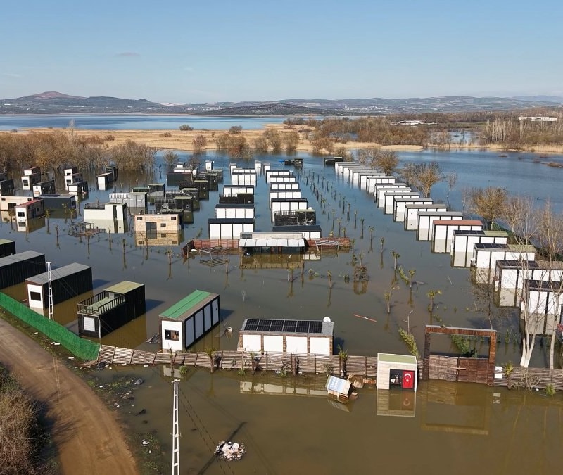 Bursa'da Uluabat Gölü’ndeki su seviyesinin yükselmesiyle, sular altında kalan evler, drone ile görüntülendi.