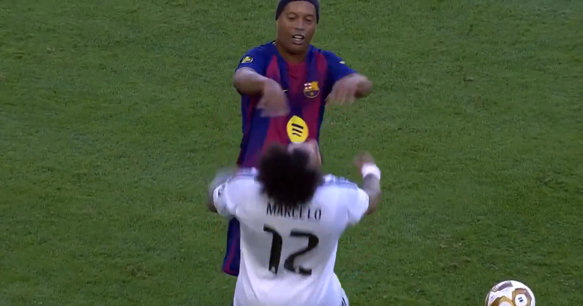 Empurrão de Ronaldinho a Marcelo no clássico de lendas torna-se viral (vídeo)