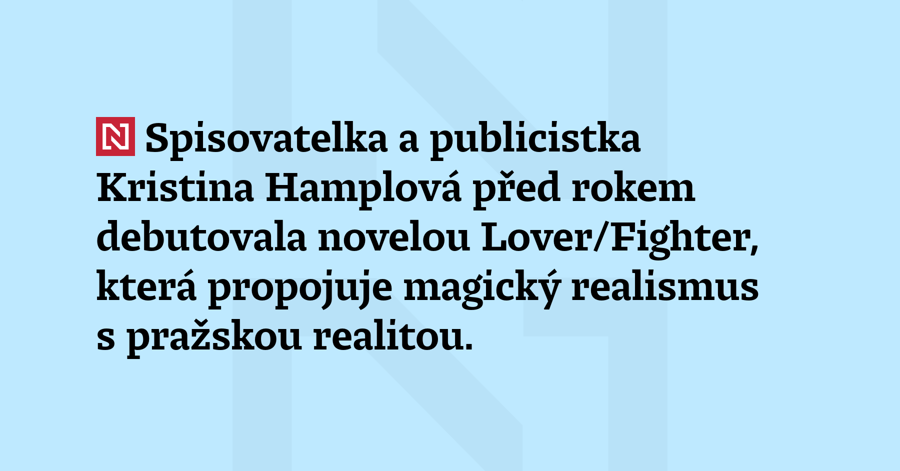 Spisovatelka a publicistka Kristina Hamplová před rokem debutovala novelou Lover/Fighter, která propojuje magický realismus s pražskou realitou. V příběhu o droze z modrého masa papoušků zkoumá kulturu agrese a posedlost silou. „Mainstreamová kultura je násilnější, než byla, když jsem byla v pubertě,“ říká Hamplová.
