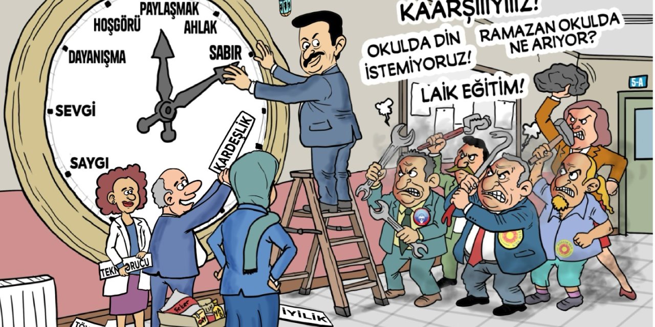 Eğitim-Bir-Sen’in Ramazan temalı karikatür paylaşımı sosyal medyada gündem oldu. Okullardaki Ramazan etkinlikleri ve laiklik tartışmaları yeniden alevlendi.