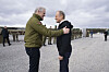 Statsminister Jonas Gahr Støre (Ap) ble tatt imot av Polens statsminister Donald Tusk da han mandag ankom Camp Jomsborg i Polen.