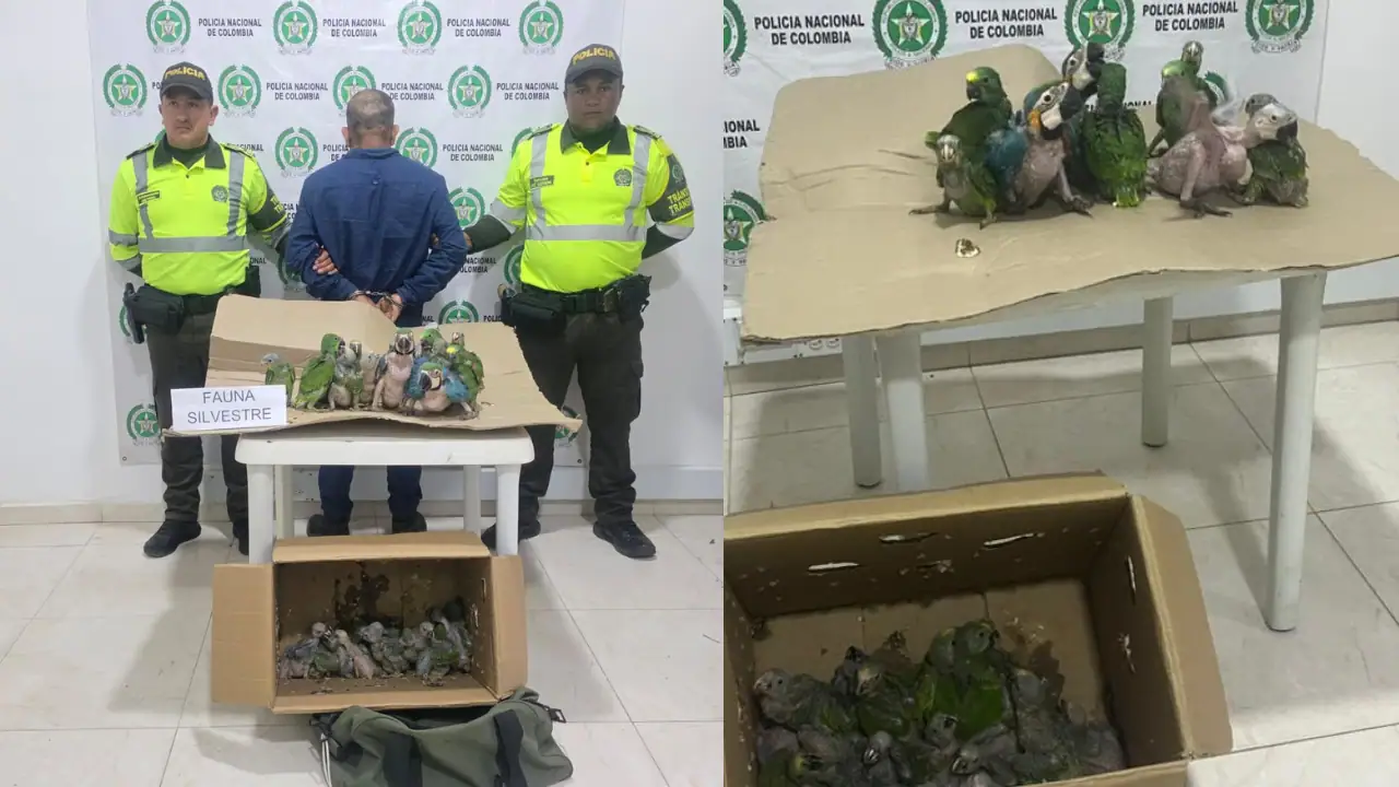 Los llevaba escondidos en un maletín y una caja. Así fue la captura de un hombre con 27 loros en plena vía nacional.