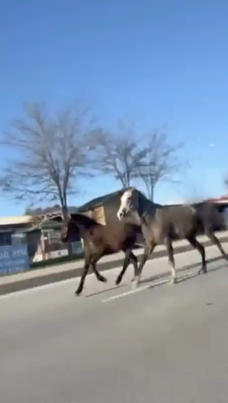 çorum’da başıboş atlar trafiği tehlikeye attı: o anlar kamerada