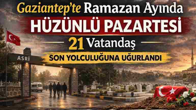 Gaziantep’te 23 Şubat 2026 tarihinde 21 vatandaş vefat etti. Gaziantep Büyükşehir Belediyesi defin listesini yayımladı. İşte isim isim yaş ve defin yerleri.