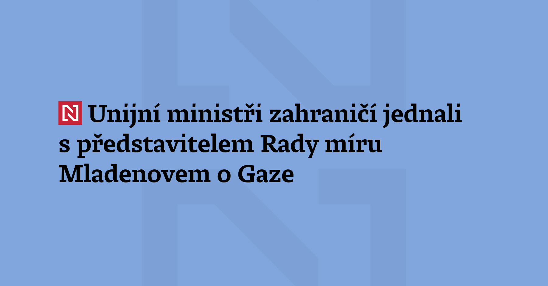 Ministři zahraničí zemí Evropské unie jednali s vysokým představitelem Rady míru pro Pásmo Gazy Nikolajem Mladenovem. Na tiskové konferenci to řekla šéfka unijní diplomacie Kaja Kallas. EU podle ní může nabídnout humanitární pomoc a výcvik policistů. (ČTK)