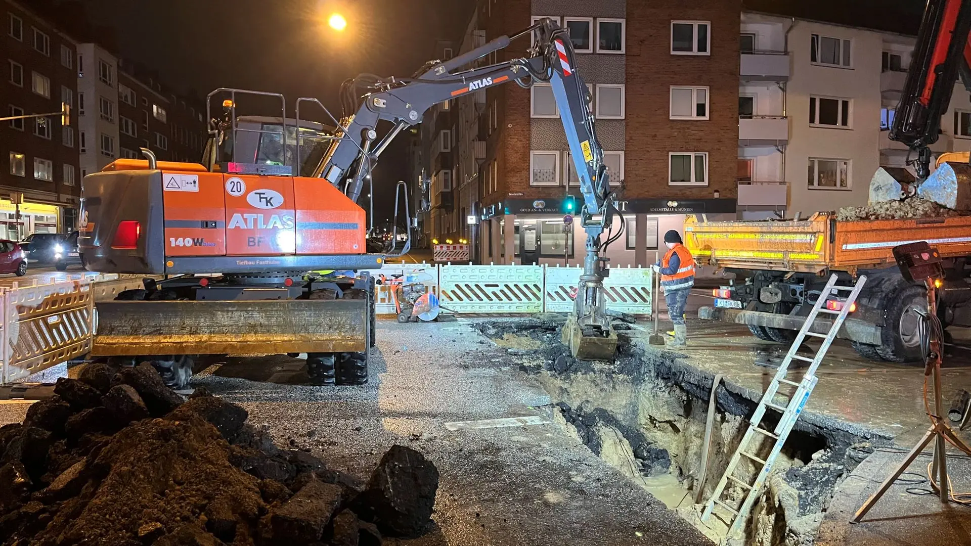 Laut Stadtwerke hatten am Montag 600 Haushalte kein Wasser. Die Olshausenstraße ist Richtung Holtenauer Straße gesperrt.