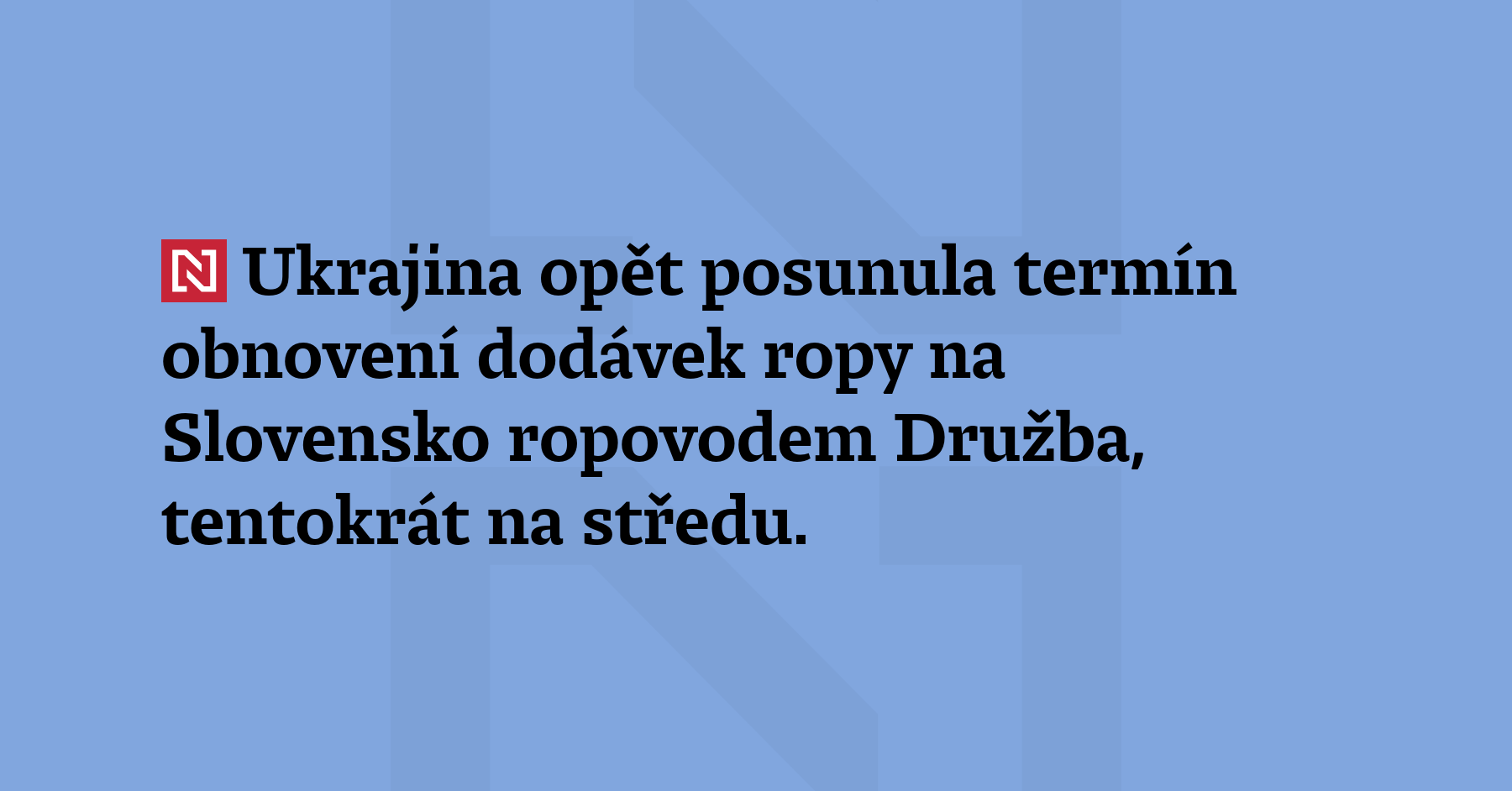 Ukrajina opět posunula termín obnovení dodávek ropy na Slovensko ropovodem Družba, tentokrát na středu. Uvedlo to slovenské ministerstvo hospodářství. (ČTK)