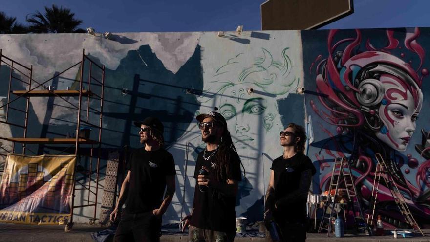 El muralista internacional afincado en Alicante Rudi Art, junto a sus compañeros Mr. Joker, llegado de Alemania, y Casem, de Inglaterra, forman The Pirate Crew (El equipo pirata), un grupo de arte urbano internacional que ya ha trabajado en equipo en murales de Miami o Copenhague. Ahora o hacen juntos de nuevo en Alicante, donde este lunes han empezado a pintar una obra que no tiene título, pero que se inspira en el mar de Alicante y en la presencia de piratas en siglos pasados. El lugar elegido para crear esta obra es un muro de 30 metros de longitud por 5,40 metros de alto, que suman una superficie de 160 metros cuadrados en la calle del Alcalde de España, junto al parking del ADDA, en el barrio de Campoamor, una zona que ya cuenta con medio centenar de piezas pintadas por artistas nacionales e internacionales y que se conservan como una ruta de arte urbano en Alicante.
