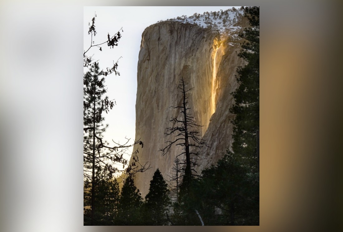 Á primeira vista, parece que as águas estão em chamas ao caírem do El Capitan, uma formação rochosa que fica no Parque Nacional de Yosemite, na Califórnia, Estados Unidos. O fenômeno que acontece no inverno na região todos os anos, sempre em fevereiro, ficou conhecido como "cascata de fogo", e tem atraído cada vez mais visitantes para se deslumbrarem com essa grande ilusão de ótica natural. Fofura! Filhote de macaco que comoveu internet agarrado a pelúcia é finalmente aceito por grupo em zoológico japonês; vídeo Partículas em suspensão: Nuvem de poeira do Saara atinge Portugal e parte da Europa; entenda o fenômeno Para as águas ganharem um tom de fogo dourado, tudo na natureza tem que estar em seu devido lugar. Naturalmente, o grande rochedo não tem quedas d'água, como cascatas ou cachoeiras. Uma cachoeira surge por uma curta temporada graças ao derretimento da neve nos picos da Serra Nevada. Aliado a isso, o ângulo da luz do entardecer, no pôr do sol, dá o tom certo. Initial plugin text Os visitantes devem ficar atentos. Esse espetáculo não se alonga, demorando apenas cerca de 10 minutos todas as tardes, destaca a National Geographic. E nem sempre as condições climáticas favorecem esse fenômeno, ou uma boa visibilidade. O céu limpo está entre os elementos necessários. O perfil do parque no Instagram destacou que o "período de observação da Horsetail Fall em 2026, previsto para 10 a 26 de fevereiro, quando o sol poente pode iluminar a cachoeira em El Capitan com um brilho intenso e avermelhado". "O fenômeno depende de condições naturais, incluindo o volume de água, céu limpo e o ângulo do sol", aponta um trecho da publicação que fala sobre a temporada. Initial plugin text Como acontece todos os anos, quem consegue um registro desse momento compartilha por meio de fotos e vídeos nas redes sociais, como tem acontecidos nos últimos dias. Mas isso começou há tempos, em 1973, para ser mais preciso, como o fotógrafo de vida selvagem Galen Rowell fez o "clique" que popularizou a região, lançando-a à fama de "cascata de fogo", lembra a National Geographic. Initial plugin text Galerias Relacionadas