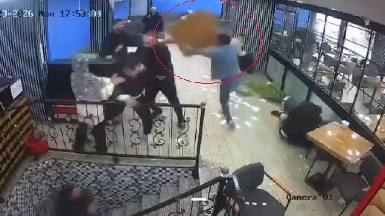 Kafede karşılaşan husumetli iki grup, birbirlerine masa ve sandalyelerle saldırdı; o anlar kamerada